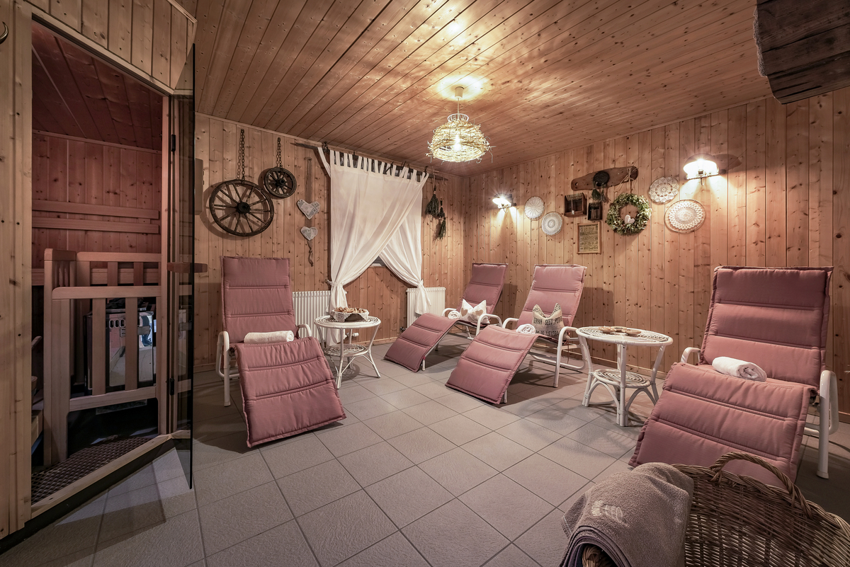 Sauna del maso in stile rétro – su prenotazione. Perfetta per riscaldarVi e rilassarVi dopo le Vostre giornate sportive.